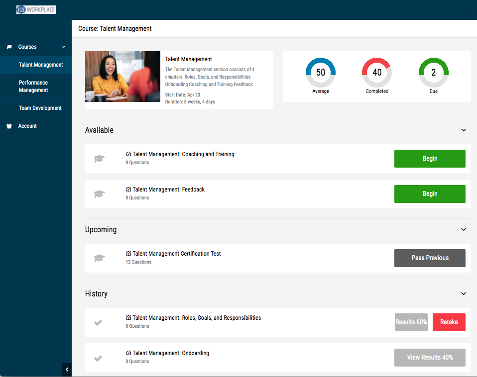 The Interviewer Training/Talent Acquisition course is part of the i2i Management training series. Other sections in this series are Performance Management, Talent Management, and Team Development. The Talent Acquisition Management course consists of 4 modules: